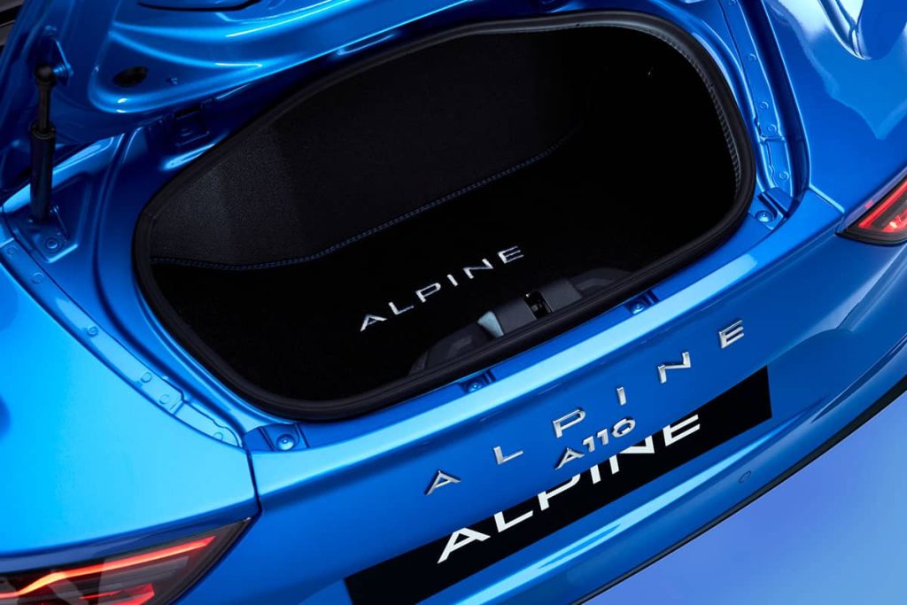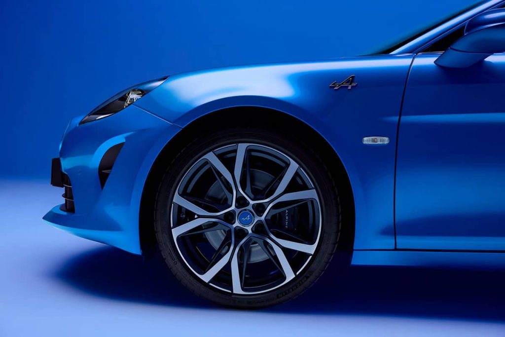 Alpine A110: Gesamtverbrauch kombiniert (l/100 km): 6,8; CO2-Emissionen kombiniert (g/km): 154; CO2-Klasse: E. Abbildung zeigt Sonderausstattung.